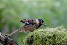 眼纹噪鹛为画眉科噪鹛属的鸟类。中型鸟类,体长30-34厘米。头、颈黑色,脸、眉纹和颏茶黄色,上体棕褐色满杂以白色、黑色和皮黄色斑点,飞羽具白色端斑,尾具白色端斑和黑色亚端斑。喉黑色,胸棕黄色具黑色横斑。…全部>>