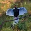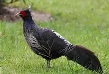 黑鹇是鸡形目雉科目鹇属鸟类,又称鸬雉、黑鸡。体型中等。雄鸟上体黑褐色,背羽具黑紫色金属光泽;头顶具黑羽冠;脸部裸皮呈红色,散生稀疏黑色纤羽;尾长而侧扁,中央两对尾羽红褐色,…全部>>