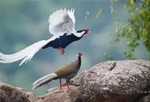 白鹇,是鸡形目雉科鹇属的一种留鸟。雄鸟上体白色并具黑色纹,下体黑色,头顶具黑色长羽冠,尾白而长;雌鸟体型较小,以橄榄褐色为主,下体具白色或皮黄色细纹;虹膜褐色,眼周具红色裸皮,喙黄色,脚鲜红色。…全部>>