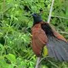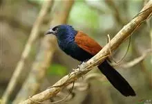 褐翅鸦鹃,是鹃形目鸦鹃科鸦鹃属的鸟类。褐翅鸦鹃的身体为黑色;头颈和胸带蓝紫色金属光泽并具黑亮的羽干纹,下胸至腹部泛金属绿光泽;两翼和肩部为棕栗色,外侧飞羽具暗色羽端,尾羽闪铜绿色光泽;虹膜赤红色,…全部>>