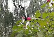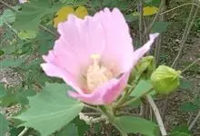 木芙蓉,锦葵科木槿属落叶灌木或小乔木。小枝上有细绒毛;叶片为卵状心形,托叶为披针形,常早落;花单生,花萼为钟形,花冠初为白色或淡红色,后逐渐变为深红色;果实为扁球形,有淡黄色的毛附着。花期8到10月。…全部>>