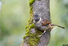 眼纹噪鹛为画眉科噪鹛属的鸟类。中型鸟类,体长30-34厘米。头、颈黑色,脸、眉纹和颏茶黄色,上体棕褐色满杂以白色、黑色和皮黄色斑点,飞羽具白色端斑,尾具白色端斑和黑色亚端斑。喉黑色,胸棕黄色具黑色横斑。…全部>>
