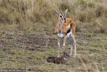阿拉伯沙瞪羚:是偶蹄目、牛科、瞪羚属的食草动物。头尾长97厘米,身高约55-60厘米。雄性体重约为22千克,雌性性体重为18千克。雌雄都有犄角,雄性长达27厘米,雌性15厘米。体型较小。腿细长,…全部>>