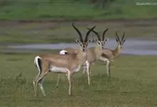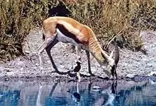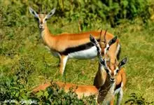 阿拉伯沙瞪羚:是偶蹄目、牛科、瞪羚属的食草动物。头尾长97厘米,身高约55-60厘米。雄性体重约为22千克,雌性性体重为18千克。雌雄都有犄角,雄性长达27厘米,雌性15厘米。体型较小。腿细长,…全部>>