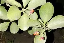 冬青卫矛,是卫矛科卫矛属灌木植物,聚伞花序,花白绿色,花萼裂片半圆形,花瓣近卵圆形,花盘肥大;蒴果近球形,熟时淡红色;叶对生,革质,倒卵形或椭圆形,先端圆钝,基部楔形,…全部>>