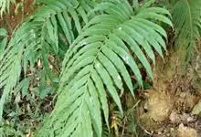 苏铁蕨是乌毛蕨科苏铁蕨属植物。根状茎粗壮,木质,直立圆柱状,直径达15厘米或更粗,高达1.5米或过之;鳞片红棕色或深棕色,有光泽,线状狭长披针形。叶簇生,叶柄禾秆色至深禾秆色,光滑或下部略粗糙,…全部>>