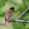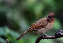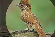 条纹噪鹛是画眉科、噪鹛属中型鸟类,体长28-32厘米。头具短的羽冠,上体栗褐色,飞羽外翻蓝灰色。下体棕栗色,腹以后转为褐白色。除飞羽和尾羽外,所有上、下体羽均具白色羽干纹。极为醒目。野外特征明显,…全部>>