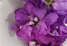 紫罗兰 W.T.Aiton)是十字花科紫罗兰属植物。二年生或多年生草本。植株高60厘米,布满灰白色的分枝柔毛;茎直立,多分枝,基部稍木质化;叶片为长圆形、倒披针形或匙形;总状花序顶生和腋生;花多数,…全部>>
