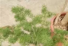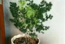 蓬莱松是天门冬科、天门冬属多年生丛生草本植物。宿存,圆柱形肉质根,纵截面为绿色和表面灰色。植株高可达3米。茎呈圆柱形或近四边形,底部木质化,具有灰色或灰褐色。幼嫩的茎在每个节上都被紫绿色鳞片包,…全部>>