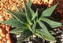 条纹十二卷 Haw.)是芦荟科十二卷属植物,为多年生肉质草本植物。植株高度10-15厘米,其呈莲座状生长;叶片紧密轮生在茎轴上,柔软多汁,呈长三角状披针形,极肥厚;叶面光滑、扁平,色深绿;叶背突起,…全部>>