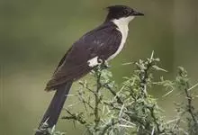 斑翅凤头鹃: 成鸟具羽冠,上体及头侧、翅、尾等黑色,具铁绿色亮辉,尾羽端部具白斑,两侧者形宽,中央者较狭;下体白色、淡灰白或略带棕黄色。虹膜褐至红褐色;嘴黑色;脚灰蓝黑色。…全部>>