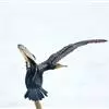 普通鸬鹚是属于鲣鸟目鸬鹚科鸬鹚属鸟类,又名水老鸦、鱼鹰、乌鬼、黑鱼郎等。体长720—900毫米,雌雄同型。通体黑色,有绿褐色金属光泽;喙厚重,喙基和喉囊橙黄色,脸颊及喉白色;夏羽颈及头饰具白色丝状羽,…全部>>