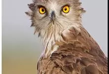 短趾雕:体长62-70厘米,体重1.2-2.3千克。它们的颔、颈和胸部上方呈浅棕色。头部浑圆像猫头鹰般,眼睛呈鲜黄色。身体沉重,上体灰褐,下体白而具深色纵纹,喉及胸单一褐色,腹部具不明显的横斑,…全部>>