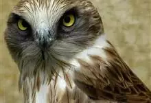 短趾雕:体长62-70厘米,体重1.2-2.3千克。它们的颔、颈和胸部上方呈浅棕色。头部浑圆像猫头鹰般,眼睛呈鲜黄色。身体沉重,上体灰褐,下体白而具深色纵纹,喉及胸单一褐色,腹部具不明显的横斑,…全部>>