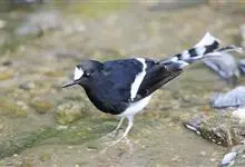 白额燕尾是雀形目鸫科燕尾属鸟类,又叫水鸦雀、白冠燕尾、黑背燕尾。前额至头顶具白斑,头余部、颈、背、喉及胸黑色,腰、腹部及尾下覆羽白色,两翼黑色且具白色翼斑;尾上覆羽黑色并具白色端斑,中央尾羽最短,…全部>>