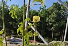 咖啡黄葵 Moench)亦称黄秋葵,是锦葵科一年生草本植物。茎圆柱形,疏生散刺。叶掌状,裂片阔至狭,托叶线形,被疏硬毛。花单生于叶腋间,花梗疏被糙硬毛,小苞片钟形;花萼钟形,密被星状短绒毛;花黄色,…全部>>