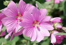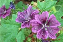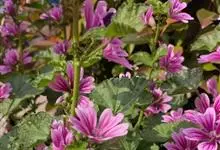 锦葵:二年生或多年生直立草本,高50-90厘米,分枝多,疏被粗毛。叶圆心形或肾形,具5-7圆齿状钝裂片,两面均无毛或仅脉上疏被短糙伏毛。花3-11朵簇生,小苞片3,长圆形疏被柔毛;花紫红色或白色,…全部>>