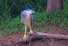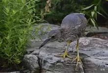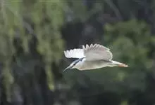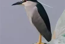 夜鹭是中型涉禽,体长46-60厘米。体较粗胖,颈较短;嘴尖细,微向下曲,黑色;胫裸出部分较少,脚和趾黄色;头顶至背黑绿色而具金属光泽;上体余部灰色;下体白色;枕部披有2-3枚长带状白色饰羽,下垂至背上,…全部>>