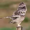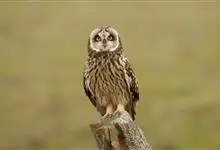 短耳鸮又名小耳木兔、田猫王、夜猫子等,是鸮形目鸱鸮科耳鸮属中小型猛禽动物。成鸟面盘显著,眼周黑色;眼先及内侧眉纹灰白色,面盘余部棕黄色杂以黑色细羽干纹;耳簇羽短小而几乎不外露,…全部>>