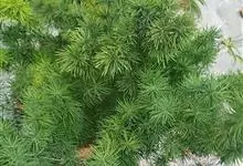 蓬莱松是天门冬科、天门冬属多年生丛生草本植物。宿存,圆柱形肉质根,纵截面为绿色和表面灰色。植株高可达3米。茎呈圆柱形或近四边形,底部木质化,具有灰色或灰褐色。幼嫩的茎在每个节上都被紫绿色鳞片包,…全部>>