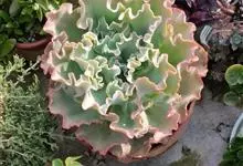 女王花笠,又名扇贝石莲花、女王花舞笠,是景天科拟石莲花属的多肉植物。由美国加利福尼亚州的育种师Dick Wright于1964年培育。特征是呈大波浪状褶皱的红色叶缘和气质高贵的粉紫色调。…全部>>