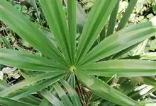 细叶棕竹,灌木,茎细如竹,多数聚生,有网状叶鞘。叶半圆形,掌状深裂,裂片狭长,阔线形,软垂,裂片7-20枚,叶柄无刺。全部>>