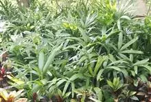 矮棕竹:丛生灌木,高1米或更高些,茎圆柱形,有节,上部被紧密的网状纤维的叶鞘,纤维毛发状,淡褐色。叶掌状深裂,裂片7-20片,线形,具1-2条肋脉,叶柄约与叶片等长,较细,两面凸起,边缘平滑。花雌雄…全部>>