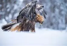 金雕:属于鹰科、雕属的猛禽。体长76-102厘米,翼展达2.3米,体重2-6.5千克。雌雄同色。未成年时,头、颈黄棕色;两翼飞羽除了最外侧三枚外基部均缀有白色,其余身体部分暗褐色;羽尾灰白色,…全部>>