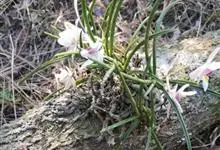 槽舌兰 Schltr.):茎长达5厘米,被宿存的叶鞘。叶多数,圆柱形。总状花序腋生,通常具1-3朵花;花开展;萼片和花瓣白色带粉红色,在背面中肋被少数褐红色斑点,多少扭转或边缘波状;花瓣稍斜椭圆形,…全部>>