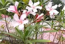 夹竹桃,又名红花夹竹桃、欧洲夹竹桃,是夹竹桃科夹竹桃属的一种常绿直立大灌木,枝条灰绿色,含水液。叶披针形,3叶轮生。聚伞花序顶生,花冠粉红至深红色,花冠漏斗状,有特殊香味。蓇葖果,圆柱形。种子长圆形,…全部>>