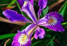 紫苞鸢尾是鸢尾科鸢尾属多年生草本植物,该植物的植株基部围有短的鞘状叶;根状茎斜伸,二歧分枝,节明显;须根粗,暗褐色;叶条形,灰绿色,有3-5条纵脉;花茎纤细,略短于叶,有2-3枚茎生叶;苞片2枚,膜质,…全部>>