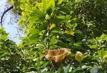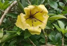 金杯藤 P.S. Green)是茄科、金杯藤属多年生常绿大型藤本。茎及枝条粗壮。叶片互生。长椭圆形。先端突尖。叶面有光泽。全株具有毒乳汁。花顶生,单朵或数朵,花苞棒槌状。从绿色转变为淡黄色。…全部>>