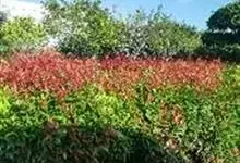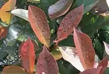红叶石楠 是蔷薇科,石楠属杂交种,为常绿小乔木或灌木,乔木高可达5米、灌木高可达2米。叶片革质,长圆形至倒卵状、披针形,叶端渐尖,叶基楔形,叶缘有带腺的锯齿,花多而密,复伞房花序,花白色,梨果黄红色,…全部>>