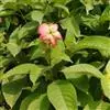 石楠 Kalkman),是蔷薇科石楠属的常绿乔木,高5~12米,株型紧凑,树冠圆球形。树枝为褐灰色;鳞片为褐色,没有毛;叶片革质,长椭圆至侧卵状椭圆形,有锯齿,新叶红色光亮。复伞房花序,白色小花,…全部>>