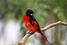 灰喉山椒鸟:共有8个亚种。体长18-22厘米。雄鸟头部和背亮黑色,腰、尾上覆羽和下体朱红色,翅黑色具一大一小的两道朱红色翼斑。中央尾羽黑色,外侧尾羽基部黑色,端部红色。…全部>>