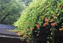 凌霄 Schum.),别名上树龙、五爪龙、九龙下海等,为紫葳科凌霄属的攀援藤本植物。其茎木质,以气生根攀附于它物之上。叶对生,为奇数羽状复叶;小叶卵形至卵状披针形,边缘有粗锯齿;顶生疏散的短圆锥花序,…全部>>