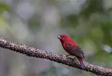 普通朱雀是雀形目雀科朱雀属鸟类,又名红朱雀、马料、青麻料。雄鸟上体红色,下体淡红色;头部、喉部、胸部及腰部亮红色;背部褐色染红色;两翼及尾黑褐色,羽缘染红色。雌鸟上体橄榄褐色,下体近白色,…全部>>
