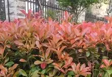 红叶石楠 是蔷薇科,石楠属杂交种,为常绿小乔木或灌木,乔木高可达5米、灌木高可达2米。叶片革质,长圆形至倒卵状、披针形,叶端渐尖,叶基楔形,叶缘有带腺的锯齿,花多而密,复伞房花序,花白色,梨果黄红色,…全部>>