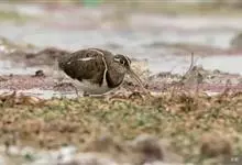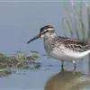 阔嘴鹬是涉禽,体长17厘米。特征为翼角常具明显的黑色块斑并具双眉纹。与黑腹滨鹬平滑下弯的嘴相比,阔嘴鹬的嘴具微小纽结,使其看似破裂。上体具灰褐色纵纹;下体白,胸具细纹;腰及尾的中心部位黑而两侧白。…全部>>