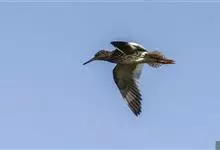 红脚鹬:体长28厘米,上体褐灰,下体白色,胸具褐色纵纹。飞行时腰部白色明显,次级飞羽具明显白色外缘。尾上具黑白色细斑。虹膜黑褐色,嘴长直而尖,基部橙红色,尖端黑褐色。脚较细长,亮橙红色,…全部>>