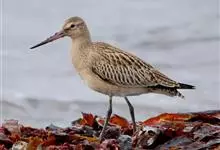斑尾塍鹬,是鸻形目鹬科塍鹬属鸟类。其体形较大,体长约40厘米;喙较长,基部肉红色、尖端黑色而略向上翘;贯眼纹细而深,眉纹白色明显;雌鸟体型比雄鸟大,喙部也明显更长。非繁殖期雌雄鸟羽色相似,…全部>>