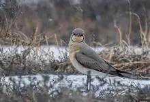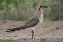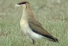 燕鸻pratincole,亦作swallow plover。燕鸻科燕鸻亚科6~7种旧大陆海滨鸟类。体长约20公分,体褐色,腰白色;叉尾,翅长而尖。晨昏飞行在河流、湖泊上空捕食昆虫。…全部>>