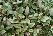 红叶石楠 是蔷薇科,石楠属杂交种,为常绿小乔木或灌木,乔木高可达5米、灌木高可达2米。叶片革质,长圆形至倒卵状、披针形,叶端渐尖,叶基楔形,叶缘有带腺的锯齿,花多而密,复伞房花序,花白色,梨果黄红色,…全部>>