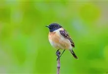 黑喉石鵖,雀形目鹟科石鵖属小型鸣禽,俗名谷尾鸟、黑喉石。其体色为黑褐色。雄鸟头部、背部、两翼及尾黑色,颈侧及翼上具白斑,胸部和腹侧红棕色,腰及尾下覆羽白色。雌鸟体色为褐色,上体具深色纵纹,胸部染棕色,…全部>>