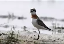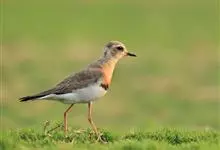 东方鸻:属小型涉禽。体重80-95克,体长220-255毫米。在夏季,前额、眉纹和头的两侧白色,头顶、背褐色或沙褐色。颏、喉白色,前颈棕色,胸棕栗色,其下有一黑色胸带紧靠其后,其余下体白色。嘴细长,…全部>>