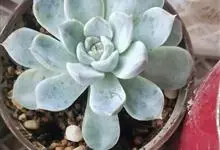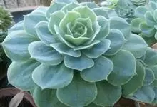 蓝石莲是景天科、拟石莲花属的多肉植物。茎部粗壮,成熟植株茎部木质化。叶片莲座型密集排列,株径不会很大,叶片相对较薄,常年绿色,表面布有白色粉末,中部凹陷,呈倒水滴状。叶尖较尖,叶缘光滑无褶皱,…全部>>