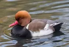 红头潜鸭为鸟纲雁形目鸭科潜鸭属动物,又名红头鸭,矶凫,体长约46厘米;雄鸟头部栗红色,胸部黑色,背部及腹部灰白色,尾黑色,嘴蓝灰色且端部黑色;雌鸟头部及胸部暗褐色,背部及腹部灰色,尾部褐色,嘴基部色浅。…全部>>