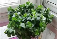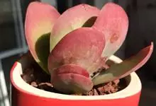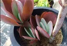 唐印为景天科伽蓝菜属的多年生肉质草本植物。植株中型,株高50厘米,宽20厘米,多分枝;叶片肉质,对生,卵形,全缘,先端钝圆,叶片淡绿色至灰绿色,表面被有厚厚的白粉,光照充足时,叶缘呈红色;圆锥花序,…全部>>