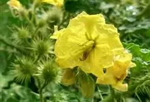 黄花刺茄是茄科,茄属一年生草本植物。直根系,主根发达,侧根较少,多须根。茎直立,基部稍木质化,株型类似灌木。高可达70厘米。叶互生,叶柄长0.5-5厘米,密被刺及星状毛;叶片卵形或椭圆形,…全部>>