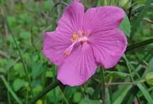 岩蔷薇是半日花科岩蔷薇属植物,多年生直立亚灌木,高约1.5-2.5米,全体具胶黏腺体。枝条褐色,侧枝分为生长枝和结果枝。单叶对生,披针形至线状披针形,长5-8厘米,宽0.5-1.5厘米。…全部>>